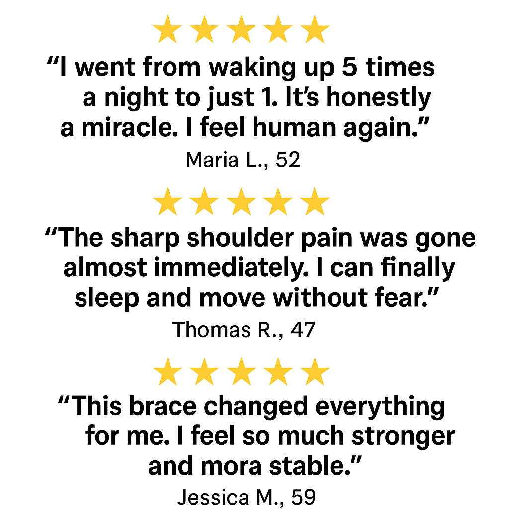 That’s exactly why we created the Shoulder Reset Brace™ — a supportive, at-home solution designed to gently stabilize your shoulder, reduce strain, and calm inflammation at the source. Its Tri-Zone Compression + Sleep-Stability System™ helps align the joint, control harmful micro-movements, and support natural healing — without bulky slings, medication, or complicated routines.